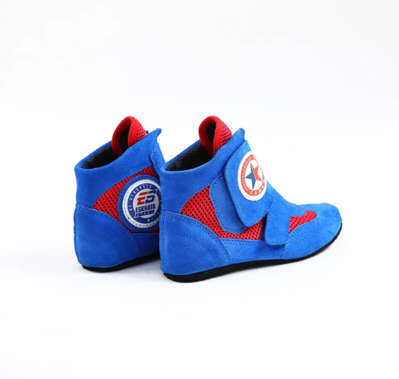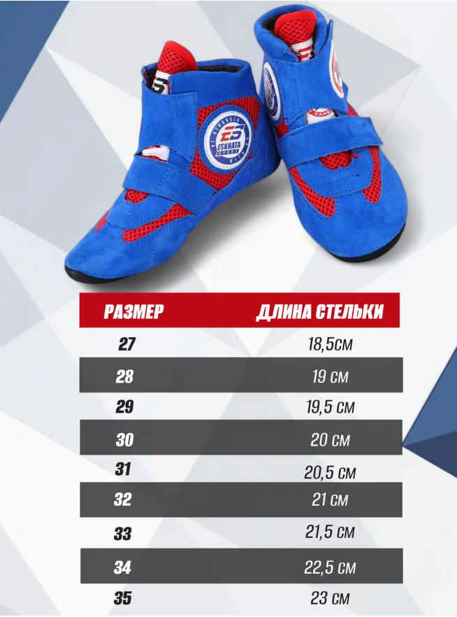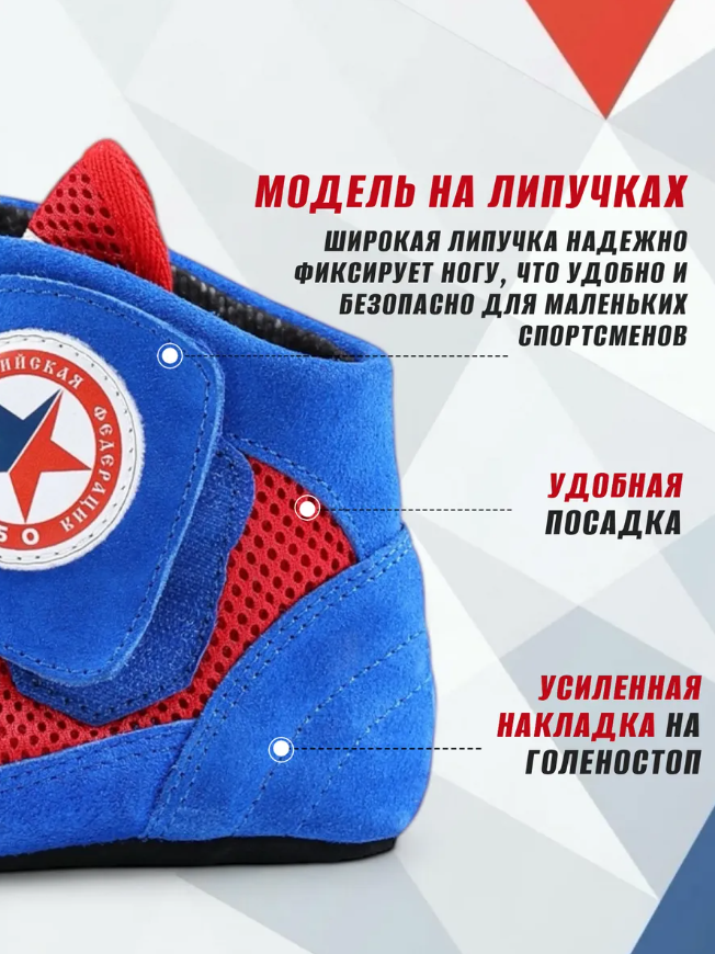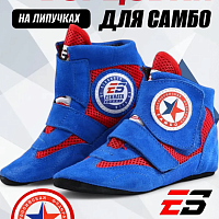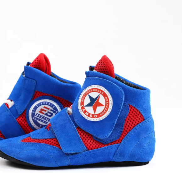 Борцовки для самбо ВФС ESKHATA на липучке, сине-красные