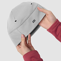 Базовая модель. Подойдёт для зимних пробежек при температуре от 0 до –10°С. Сшита из трикотажа с начёсом. Григорий Лазарев, основатель бренда GRI: «Темп — это наша базовая беговая шапка, которая давно себя зарекомендовала. Чуть-чуть изменили светоотражающее нанесение и поработали над кроем».