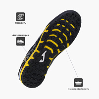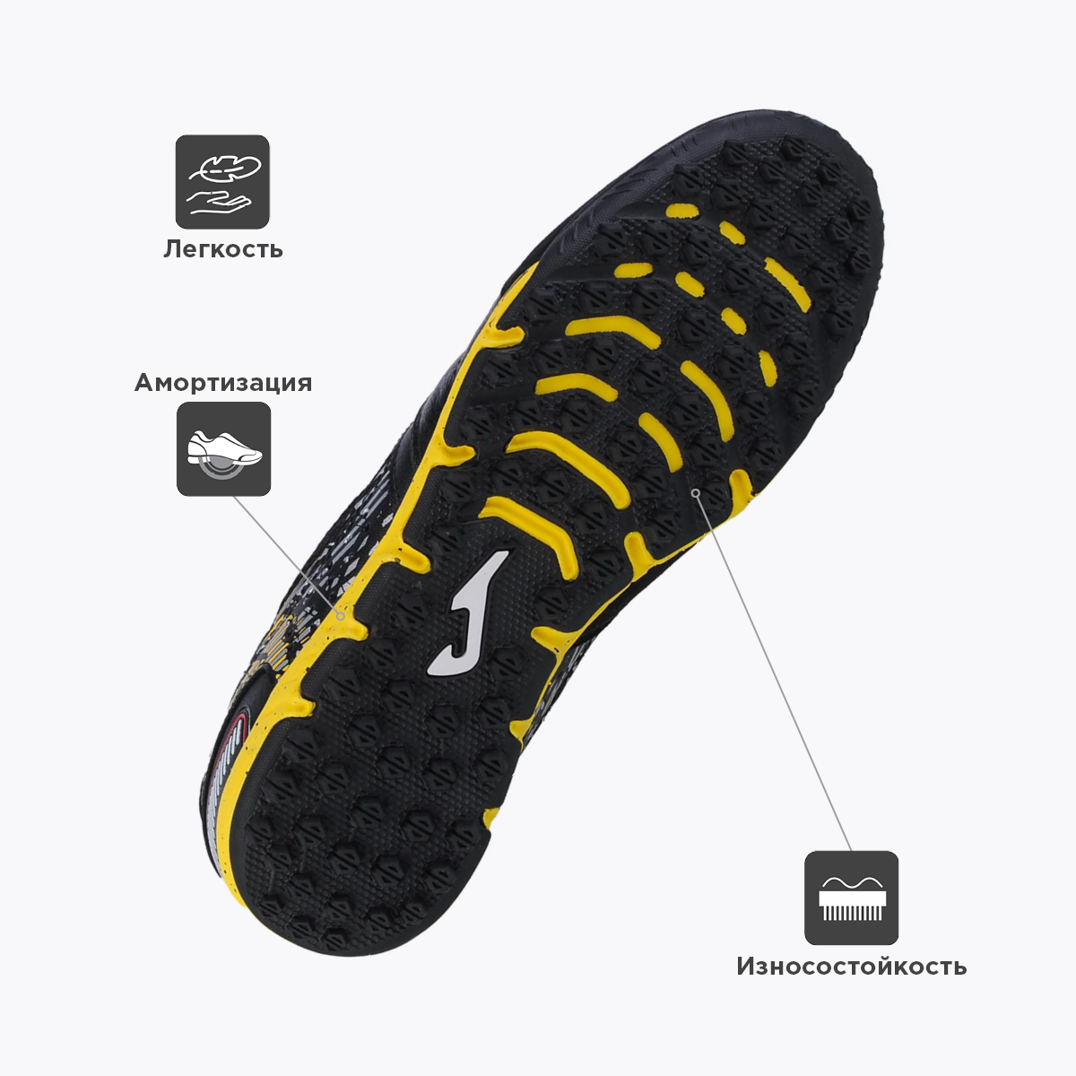 Сороконожки Joma Mundial 23 Turf выполнены из сочетания сетки и синтетической кожи. Носочная часть прошита несколькими строчками, что увеличивает силу сцепления обуви с футбольным мячом. Данная обувь отлично подойдет для игры на искусственной траве. Технология VTS обеспечивает вентиляцию стопы, сохраняя ее температуру неизменной Система Protection защищает носок от внешних ударов Стелька из EVA для комфорта и дополнительной амортизации Промежуточная подошва из высококачественного филона (Shore-55) Технология Durability делает подошву устойчивой к истиранию благодаря высокопрочному каучуку Технология Flexo обеспечивает плавный переход от пятки к носку, благодаря системе гибких линий Резиновая подошва обеспечивает надежное сцепление с поверхностью