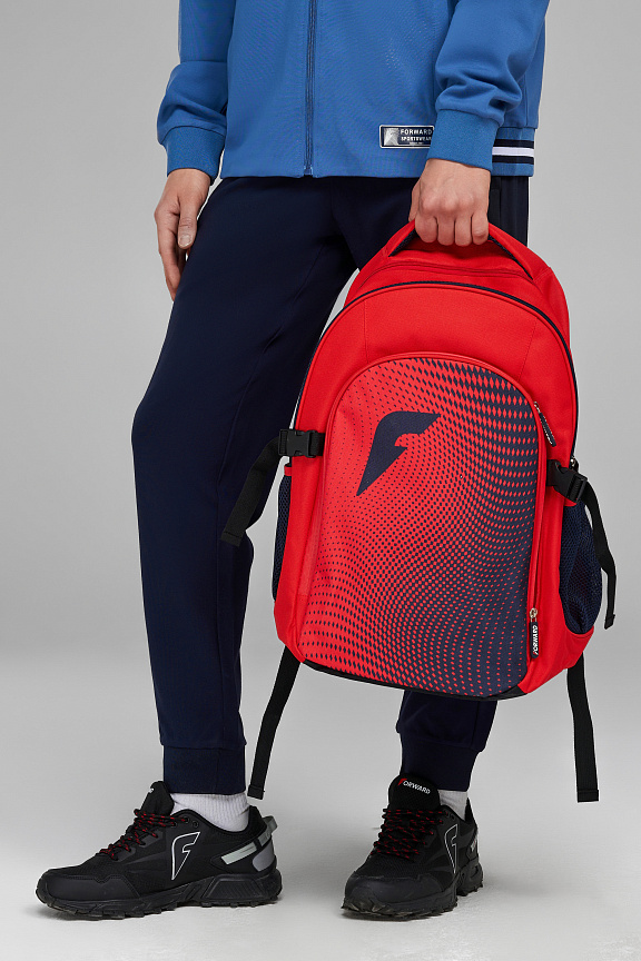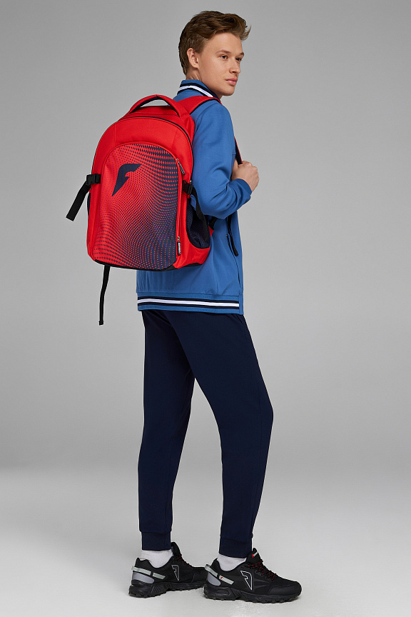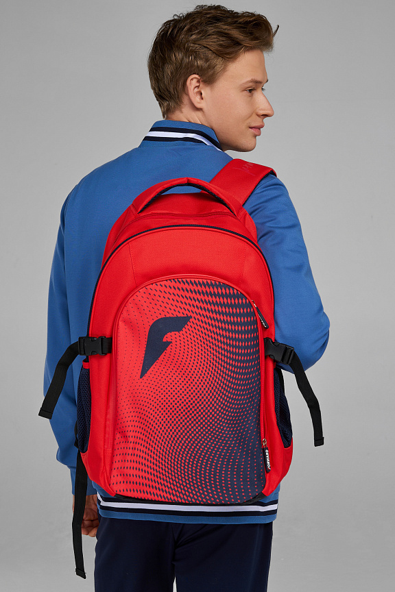 Рюкзак состоит из двух отделений, закрывающихся я на двухзамковую тесьму молнии. На передней части рюкзака накладной карман на тесьме молнии. На боковых стенках выполнены карманы из сетки. В переднем накладном кармане выполнен внутренний карман-органайзер. Спинка и лямки продублированы мягким материалом с технологией ""Air-mesh"" для удобства эксплуатации и принятия анатомически удобной формы. Лямки регулируются по длине. Объем рюкзака 35 литров. ш*в*г 33*48*21см Нанесения: принт «F», принт сублимация Состав: 100% полиэстер, подкладка 100% полиэстер.