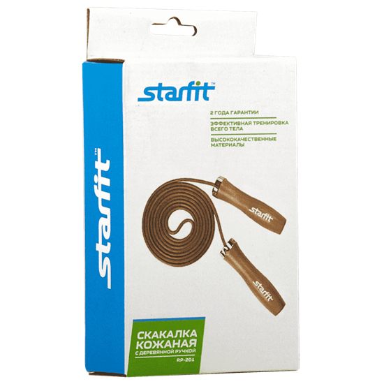 Скакалка RP-201 с деревянной ручкой - это скакалка с деревянными ручками и кожаным тросом. Плюс этой скакалки в том, что за счет кожаного троса она не сильно бьет по ногам в случае ошибки. А минус – такую скакалку приходится вращать с большей силой. В рукояти встроен подшипник для более плавного и быстрого вращения троса. Используют данную скакалку Starfit чаще всего люди, занимающиеся единоборствами, особенно боксеры. Конструкция: цельная. Длина, м: 3. Вес: 0,325 кг. Материал ручек: дерево. Материал шнура: кожа.