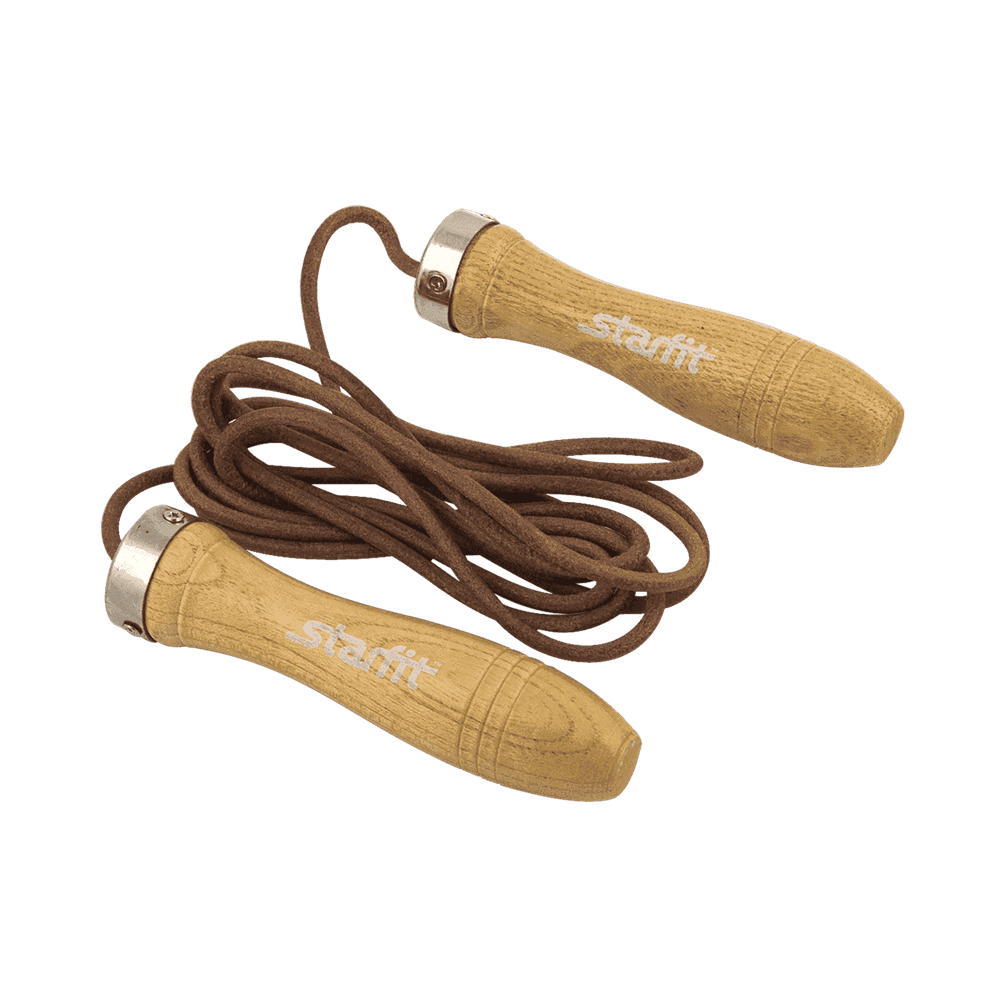 Скакалка STARFIT RP-201, кожаная с деревянной ручкой, 3 м