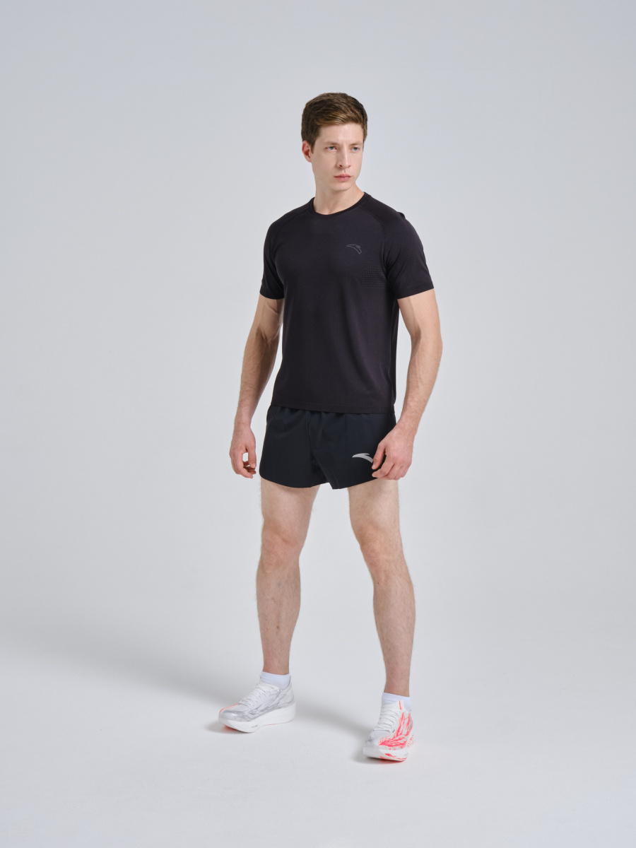 Мужские беговые шорты соревновательного уровня со стандартной посадкой RACING CHALLENGE из коллекции RUNNING – ваш выбор для достижения лучшего результата на забегах любой дистанции, от спринта до марафона. Шорты выполнены из легкой и быстросохнущей ткани основе полиэстера (78%) со значительной долей спандекса (22%) для оптимальной эластичности и свободы движений. Широкий эластичный пояс с внешним регулировочным шнурком обеспечивает надежную и комфортную посадку на талии. Разрезы по бокам гарантируют полную свободу движений, позволяя вам двигаться естественно и без ограничений. Внутренние сетчатые брифы обеспечивают дополнительную поддержку и комфорт. Скрытый карман, расположенный сзади на поясе, идеально подходит для хранения гелей или других мелких предметов экипировки. Световозвращающий логотип ANTA на левом бедре спереди и световозвращающий логотип коллекции на поясе сзади повышают вашу видимость в условиях недостаточного освещения. Классический черный цвет делает эти шорты универсальным элементом вашего Полиэстер 78%, Спандекс 22%