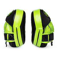 Изогнутые тренерские лапы, модель CURVED в фирменной салатово-черной расцветке. Традиционно для нашей экипировки, Лапы CURVED выполнены из высококачественной 100% натуральной кожи. Ударная поверхность усилена высокотехнологичными составами для увеличения срока службы даже при профессиональных поточных нагрузках. Многослойный пенный наполнитель специальным образом скомпонован, для достижения максимального уровня поглощения энергии удара. При этом внешний слой, на ударной поверхности, не жесткий, что максимально удобно и безопасно как для спортсмена, так и для наставника. Данная особенность делает лапы очень удобными и для тренировок спортсменов смешанных стилей, использующих мма перчатки для ударной техники. Плотная, но не тесная посадка руки. Фирменная подлодонная полусфера способствует максимальному удобству тренера и снятия части нагрузки с кисти, а также противостоит скручиванию запястья при неточных ударах. В лапах предусмотрена вентиляция и дополнительная фиксация запястья ремешком на липучке. Идеально подойдут как для силовой так и для скоростной работы. Габариты тренерских лап: Высота: 22 см Ширина: 17 см Толщина: 6,5 см