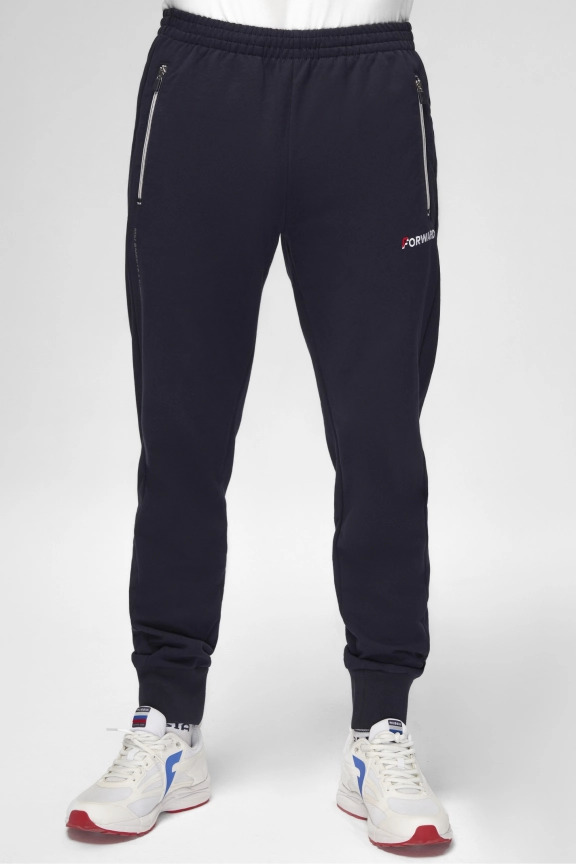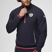 Куртка прямого силуэта. Полочка с центральной застежкой на тесьму молнию до уровня груди, с воротником стойка. Боковые крманы прорезные с входами на тесьме молнии. Рукава втачные. Воротник манжеты рукавов и низ изделия обработаны с трикотажным полотном ластик. Нанесения на куртке: Жаккардовый шеврон «Герб РФ», жаккардовый шеврон «Флаг РФ», вышивка «FORWARD», декоративный принт «Трек», принт «Мы вместе.Спорт». Брюки зауженного силуэта с боковыми, прорезными карманами на тесьму молнию. Пояс с эластичной тесьмой. Ширина пояса регулируется шнуром, вставленным внутрь. Низ брюк выполнен с манжетами из трикотажного полотна ластик. Нанесения брюки: вышивка «FORWARD», вышивка «Мы вместе.Спорт». Состав: 80% хлопок, 20% полиэстер