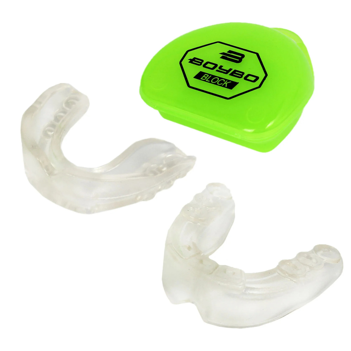 Одночелюстная капа BoyBo Block для защиты зубов и дёсен спортсмена, участвующего в спаррингах. Изготовлена из силикона, для придания капе индивидуальной формы зубов ее необходимо подвергнуть процедуре «варки» 45 секунд. Капа легко устанавливается на зубы и уверенно держится во рту. Защитный футляр в комплекте.