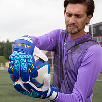 Вратарские перчатки Training Flat из линейки NIGMA разработаны совместно с экс-вратарем сборной России Русланом Нигматуллиным. Данные перчатки созданы для любительских тренировок. Классический крой Flat Palm. Ладонь выкроена из синтетического латекса Amateur толщиной 3 мм, который обладает базовыми характеристиками цепкости и износостойкости. Внутренняя подкладка изготовлена из специальной пены толщиной 3 мм и добавляет мягкости. Материал внешней стороны перчатки - синтетический латекс толщиной 2 мм, дополненный рельефным рисунком. Все пальцы руки обернуты в дышащую ткань. Специальная технология Free Motion придает максимально комфортные ощущения кисти во время игры. Благодаря манжете на липучке кисть отлично зафиксирована, а перчатку можно снимать и надевать за считанные секунды. FREE MOTION - специальная конструкция перчаток, с помощью которой перчатки практически не сковывают движения пальцев, что позволяет получить максимально эффективный захват мяча во время игры. Характеристики: Основной цвет: синий Дополнительный цвет: голубой Материал ладони: basic latex 3 мм Материал тыльной стороны: syntetic latex 3 мм Крой: flat palm Защита пальцев: нет Комплектация: перчатки, фирменная сумка на молнии Страна производства: Пакистан
