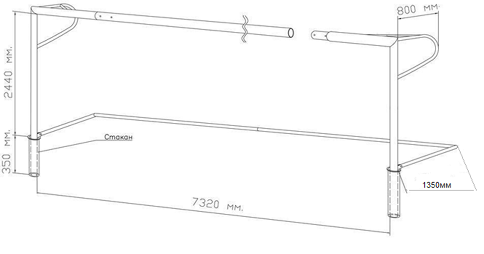 Ворота 7,32*2,44 м разборные со стаканами