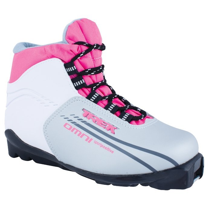 Ботинки лыжные TREK Omni SNS серебряный, лого розовый