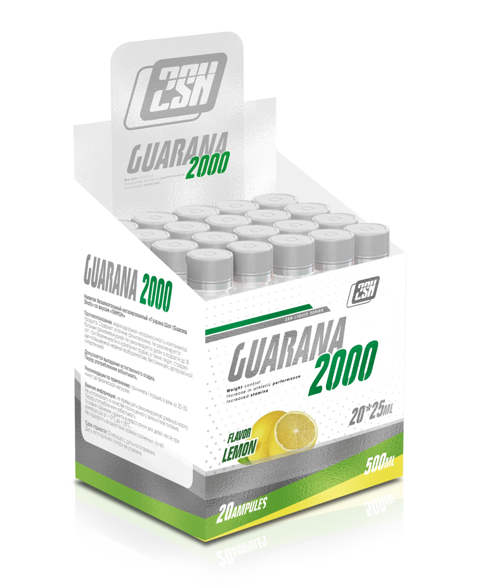 2SN Guarana 2000mg 25ml amp — это мощный энергетический продукт в компактном формате, созданный для быстрого прилива сил и улучшения концентрации. Благодаря высокой концентрации натурального экстракта гуараны, каждая ампула содержит 2000 мг активного ингредиента, который помогает справляться с усталостью и поддерживать высокую производительность. Преимущества продукта: Мощный заряд энергии благодаря гуаране, богатой натуральным кофеином. Удобный формат ампулы объемом 25 мл — легко брать с собой в спортзал, на работу или в дорогу. Разнообразие вкусов: насладитесь освежающим лимоном, сочной вишней или сладким арбузом. Ключевые особенности: Высокая концентрация экстракта гуараны (2000 мг) обеспечивает продолжительное действие. Натуральный источник энергии без резкого спада. Подходит для спортсменов, студентов, офисных работников и всех, кто нуждается в дополнительной энергии. Рекомендации по применению: Принимайте одну ампулу за 15–30 минут до тренировки или в моменты, когда требуется повышение энергии и внимания. Употребляйте не более одной ампулы в день. Выберите свой любимый вкус — Лимон, Вишня или Арбуз, и почувствуйте разницу с 2SN Guarana 2000mg!