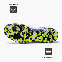 Турфы (сороконожки) Joma DRIBLING предназначены для игры на полях с искусственным покрытием. Отличительные характеристики — устойчивость, вентиляция и износостойкость — результат точного сочетания материалов, в том числе и сетчатого, применяемых в этой модели. Воздухообмен улучшает дополнительная перфорация (технология VTS), которая позволяет отводить излишнюю влагу и тепло и сохранять комфортные ощущения в течение всего времени тренировки или игры. Благодаря технологии шнуровки PERFECT FIT в DRIBLING улучшена посадка, а усиленная передняя часть защищает стопу. Износостойкая резиновая подошва, где применены технологии DURABILITY, FLEXO и ROTATION, обеспечивает необходимый уровень устойчивости, амортизации и позволяет футболисту быстро менять направление движения. DURABILITY DURABILITY DURABILITY – технология, применяемая в изготовлении подошвы из прочной и износостойкой резины определенной плотности, измеряемой в DIN. Защищает стопу и увеличивает срок службы обуви. Воздухопроницаемость (обувь) VTS – система, которая обеспечивает воздухопроницаемость материала, из которого изготовлена верхняя часть кроссовок, и сохраняет комфортную температуру стопы атлета во время бега. Технология предполагает наличие отверстий в материале, расположенных в тех зонах, которые более всего нуждаются в этом. VTS помогает избежать появления влаги, предотвращает образования бактерий. FLEXO – система линий сгиба на подошве, способствующая наилучшему переходу от пятки к носку при беге. Технология позволяет кроссовкам сгибаться в соответствии с естественными движениям стопы спортсмена. PROTECTION Дополнительный слой ткани большей плотности в местах наиболее подверженных износу. ROTATION Геометрическая фигура (точка вращения) на подошве облегчающая резкие развороты и изменения направления движения игрока, а также предохраняющая от травм коленей и лодыжек. Резина (Rubber) Тип: Вспененный полимер Плотность: 700 гр/м2