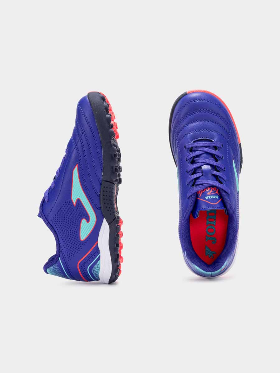 Детская универсальная модель турфов JOMA TOLEDO. Верх выполнен из качественного синтетического материала и обеспечивает отличный контроль мяча. Специальная перфорация с использованием по технологии VTS по обеим сторонам верхней части позволяет отводить излишнюю влагу и тепло, чтобы комфортные ощущения сохранялись в течение всей игры или тренировки. Подошва изготовлена из износостойкой резины DURABILITY. Структура с несколькими шипами снижает давление и гарантирует хорошую поддержку. По бокам модель усилена технологией PROTECTION для защиты от ударов. Канавки FLEXO способствуют превосходной гибкости и естественному движении стопы.
