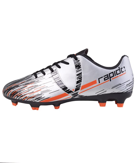 Обновленные цвета хорошо всем известной модели Rapido из линейки neo.Sprint. Многошиповые бутсы отлично подходят для игры на искусственных и натуральных поверхностях. Они стали еще практичнее, комфортнее и технологичнее. В Rapido используется технология Speedtech для максимальной скорости на поле. Анатомическая форма новой колодки обеспечивает еще более правильное положение стопы. Мягкая стелька из материала ЭВА распределяет нагрузку и дает необходимый комфорт. Для дополнительного вентилирования в язычке сделаны специальные отверстия. Конфигурация подошвы из 11-ти шипов обеспечивает комфортное сцепление с поверхностью и позволяет развивать максимальную взрывную скорость. В производстве обуви Jögel используются только качественные материалы, обувь легко моется и не требует дополнительного ухода. Технология Speedtech - соединение облегченных материалов и динамичной конструкции бутсы, позволяющее футболисту раскрыть свои скоростные способности. Преимущества: Многошиповые бутсы; Технология Speedtech для максимальной скорости на поле; Анатомическая колодка; Мягкая стелька из ЭВА. Характеристики: Материал верха: полиуретан Материал подкладки обуви: текстиль Материал подошвы обуви: термополиуретан Материал стельки: этиленвинилацетат, текстиль Полнота обуви: Е Размерный ряд: 34-45 (RU) Основной цвет: серебристый Дополнительные цвета: черный/оранжевый Вид застежки: шнурки Тип подошвы: шипованная Назначение обуви: спорт, футбол Рекомендованные покрытия: искусственный газон, тюрф, гравийные покрытия Комплектация: бутсы, коробка Вес пары, г: 750 г Тип упаковки: коробка со стикером Страна производства: Китай