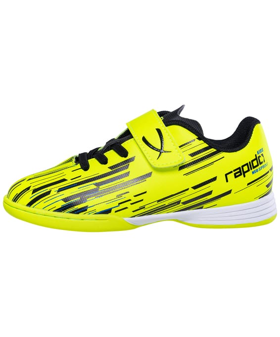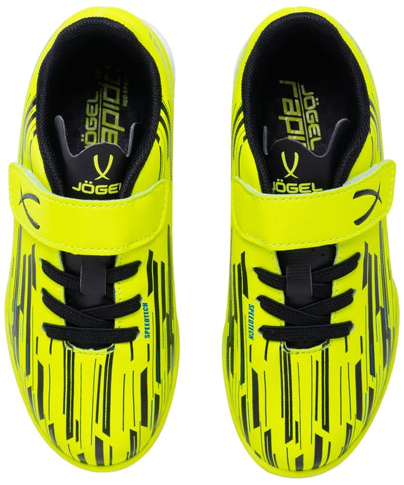 Новое поколение модели Rapido из линейки neo.Sprint , бутсы отлично подходят для зала, для игры на любых ровных поверхностях и даже повседневной носки. Они стали практичнее, комфортнее и технологичнее. В Rapido используется технология Speedtech для максимальной скорости на поле. Анатомическая форма новой колодки для еще более правильного положения стопы. Носочная часть усилена дополнительной прошивкой. Мягкая стелька из материала ЭВА распределяет нагрузку и обеспечивает необходимый комфорт. Для обеспечения дополнительного вентилирования в язычке есть специальные отверстия. Подошва обуви выполнена по технологии Non-marking, что обеспечивает безупречное сцепление с поверхностями и не оставляет следов на паркете. В производстве обуви Jögel используются только качественные материалы, обувь легко моется и не требует дополнительного ухода. Speedtech - суть технологии состоит в соединении облегченных материалов и динамичной конструкции бутсы, что позволяет футболисту раскрыть свои скоростные способности.