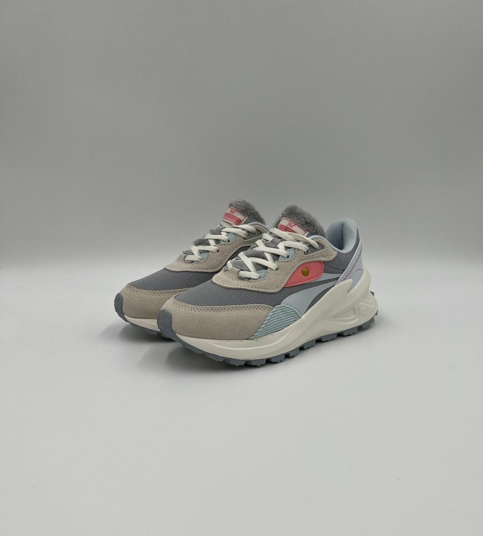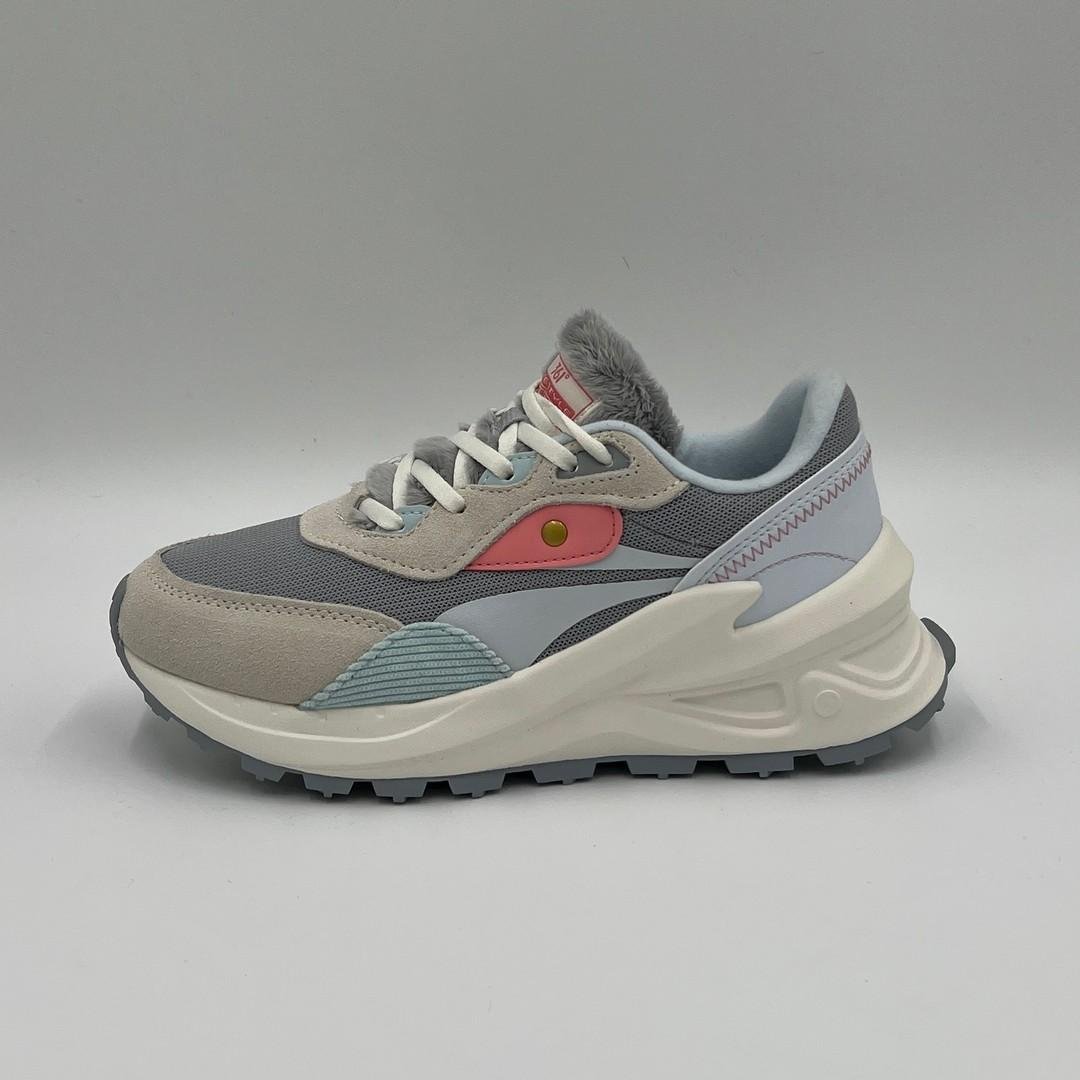 Ретро раннеры, силуэт напоминает беговые кроссовки в прошлом. Отличная женская модель на каждый день. Дополнительно использованы материалы искусственного меха на язычке и яркие цвета верха. Мягкая промежуточная подошва подарит комфорт при ходьбе.
