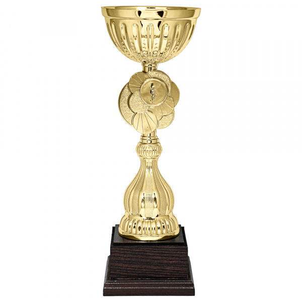 Диаметр (мм) 100 Высота (см) 28.5 Чаша (материал) металл Цоколь (материал) дерево Цвет изделия золото Цоколь (цвет) коричневый