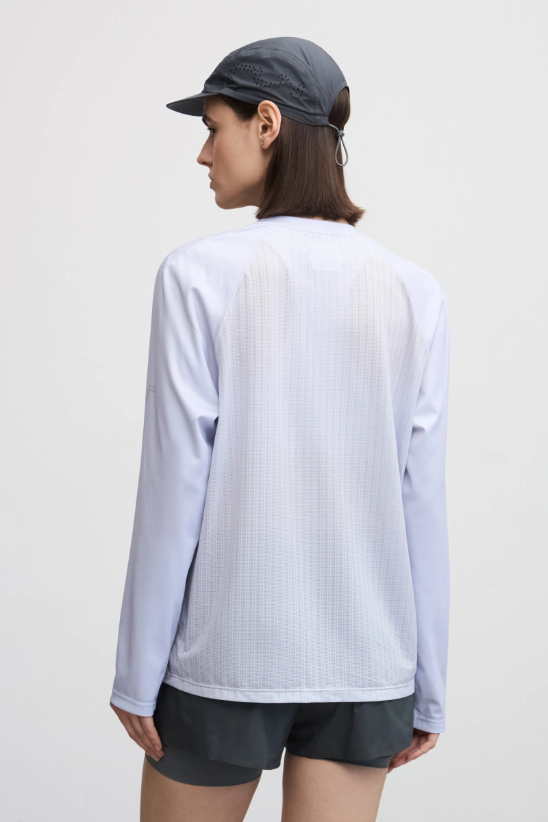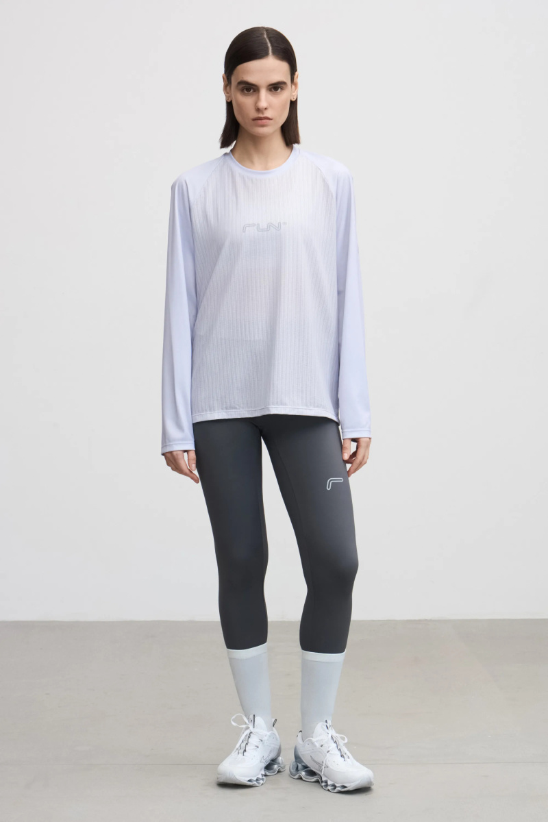 Лонгслив для бега из комбинированной ткани с рукавами реглан. Легкая модель прямого кроя эффективно выводит лишнюю влагу и сохраняет ощущение комфорта за счет перфорированной структуры основного материала. Фирменные рефлективные логотипы на груди и рукавах.