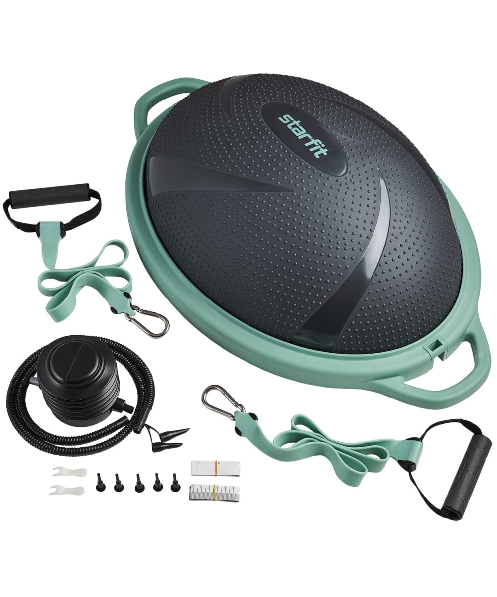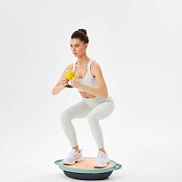 Полусфера «BOSU» GB-503 от Starfit – балансировочная платформа для тренировок в зале и дома, оснащенная съемными эспандерами. Тренажер отличается от аналогов своей оригинальной овальной формой. Увеличенная площадь позволяет разнообразить варианты упражнений опытным спортсменам и помогает удерживать равновесие новичкам, а противоскользящая поверхность делает тренировки безопаснее. Еще одно достоинство данной модели – устойчивое основание из прочного пластика. Платформа выдерживает нагрузку до 300 килограмм, ее можно использовать с обеих сторон, а удобные ручки упрощают транспортировку изделия. В комплекте также идут резиновые эспандеры с ручками, предназначенные для создания дополнительной нагрузки мышц верхней части тела. Чтобы тренировка стала еще более комфортной, ручки покрыты мягким синтетическим материалом. Эспандеры закреплены на карабинах, их легко снимать и использовать отдельно или с другими тренажерами с подобным типом крепления. Давление в полусфере регулируется с помощью насоса (входит в набор). Полусфера - отличный снаряд для функционального тренинга и создания дополнительной нагрузки во время тренировки. Занятия с BOSU укрепляют околопозвоночные мышцы, глубокие мышцы пресса, мышцы-стабилизаторы, развивают чувство равновесия. Тренажер подходит для укрепления осанки. Платформа зарекомендовала себя в качестве реабилитационного инструмента: она ускоряет восстановление после травм и операций. Преимущества: Овальная форма с увеличенной площадью; Прочное основание с удобными ручками; Противоскользящая поверхность; Двустороннее использование; Насос и два эспандера в комплекте. Характеристики: Материал платформы: ABS пластик Материал полусферы: поливинилхлорид Размер платформы, см: 61 х 46 Высота платформы, см: 3,5 Высота полусферы, см: 18,5 Материал эспандера: термопластичная резина Длина эспандера, см: 87 Ширина эспандера, см: 2,4 Материал ручки эспандера: пластик, неопрен Длина хвата ручки эспандера, см: 12 Цвет: зеленый Насос: в комплекте Максимальный вес пользователя, кг: 300 Тип упаковки: цветная коробка