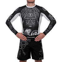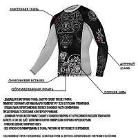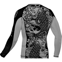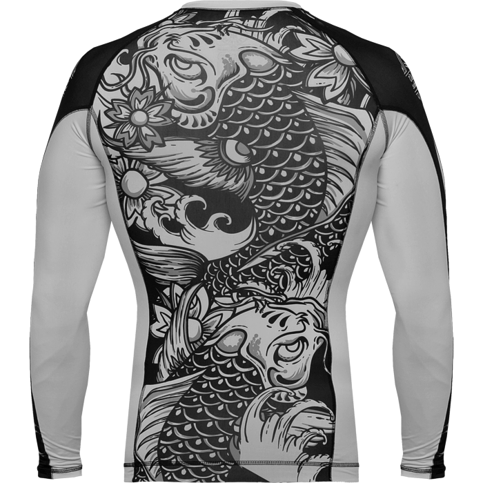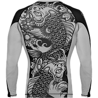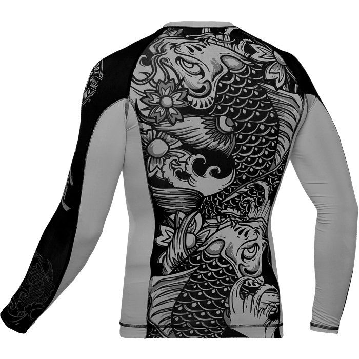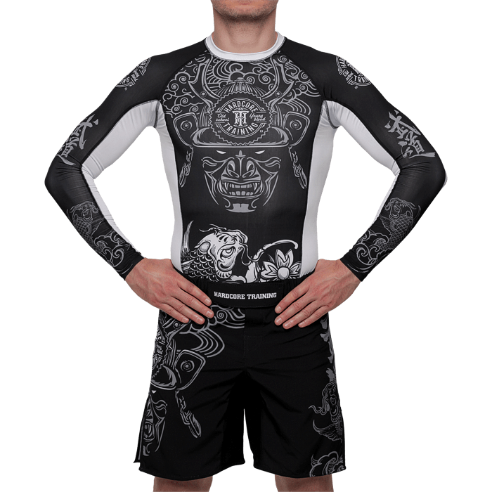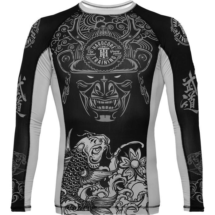 Рашгард Hardcore Training Koi. Шикарная новинка на самурайскую тему от НСТ. Сдержанный черно-белый дизайн, отличная графика и сплошной дзен ВСЕ краски сублимированны в ткань! Качественные плоски швы не натирают кожу. Длинный рукав уберегает кожу рук при работе в партере от травмирования об жесткие маты и татами. Достаточно долго сохраняет тело сухим, а значит мыщцы дольше будут в разогретом состоянии. Ткань очень приятная на ощупь. Уход: машинная стирка в холодной воде, деликатный отжим, не отбеливать. Состав: 100% полиэстер.