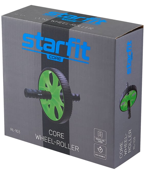 Ролик для пресса Starfit RL-103 с неопреновыми ручками, черный/зеленый Starfit