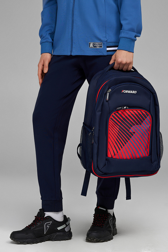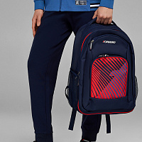 Рюкзак состоит из двух отделений, закрывающихся на двухзамковую тесьму молнии. На передней части рюкзака накладной карман на тесьме молнии. На боковых стенках выполнены карманы из сетки. В переднем накладном кармане выполнен внутренний карман органайзер из сетки с застежкой молнией. Передний карман и фронтальное отделение выполнены со светоотражающим кантом. Спинка и лямки продублированы мягким материалом с технологией ""Air-mesh"" для удобства эксплуатации и принятия анатомически удобной формы. Лямки регулируются по длине. Объем рюкзака 35 литров. ш*в*г 33*48*21см Нанесения: принт «F», декоративный принт Состав: 100% полиэстер, подкладка 100% полиэстер.