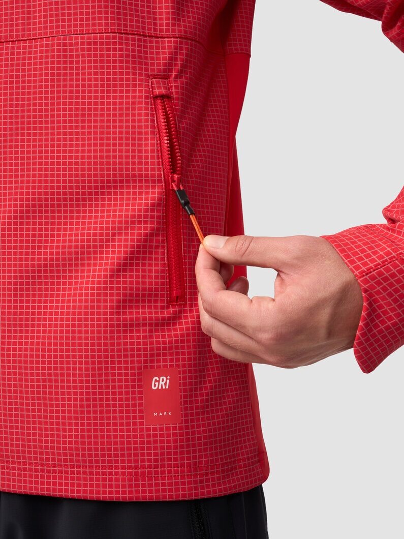 Подойдёт для зимних пробежек при температуре от –5 до –15°С. Куртка сшита из ткани с мембраной 10 000/10 000 и водоотталкивающей DWR-пропиткой, которые защитят от ветра и осадков. Утеплена микрофлисом на спине. Григорий Лазарев, основатель бренда GRI: «Куртка Маяк — это самая светоотражающая вещь за всю историю! Больше 80% изделия занимает светоотражающее нанесение в виде клеточки. Фактура красиво смотрится и с освещением, и без него». Основа: 75% нейлон, 25% спандекс. Вставки: 80% нейлон, 20% эластан. • DWR-пропитка. • Мембрана 10 000 г/кв. м. на 10 000 мм. • Утеплитель из микрофлиса в передней и задней части куртки. • Утеплённый трикотаж с начёсом. От –5°С до –15°С.