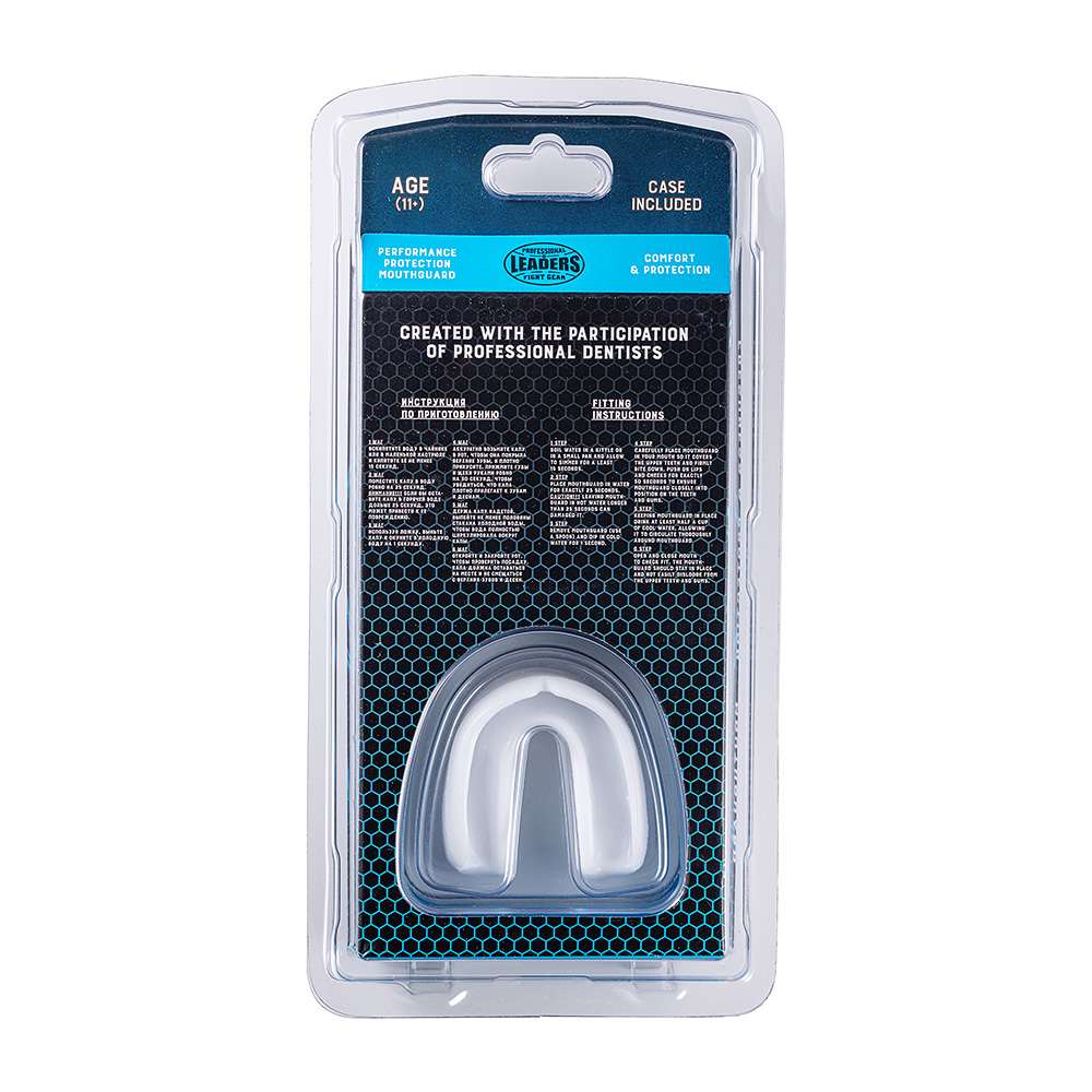 Боксерская капа Leaders. Эта классическая односторонняя боксерская капа (для верхней челюсти) создана с соблюдением требований и учетом профессиональных нагрузок в боксе, но может использоваться для защиты зубов и в других видах единоборств. При производстве используются только современные, безопасные полиматериалы пищевого класса, не содержащие вредные вещества и пластификаторы. - капа не массивна, продуманная форма для удобного использования; - надежно защищает зубы от повреждений; - снижает нагрузку на мозг; - универсальна, подходит как для боевых дисциплин, так и для других видов спорта, где необходима защита зубов; - футляр для хранения и транспортировки в комплекте; - требует обязательного термоформирования ( варки); - подходит для спортсменов с 11 лет. Рекомендации по уходу: - после применения необходимо тщательно вымыть в проточной воде и высушить; - хранить в защитном футляре. Рекомендации по варке указаны на упаковке. Вариант 1 Налить воду 65°C в стакан и опустить туда капу на 5 минут. После чего, поместить капу в рот, расположив ее по челюсти, плотно прикусить капу. Разгладить внешнюю и внутренние поверхности капы. Опустить в холодную воду на 15-20 секунд для фиксации слепка. Вариант 2 Налить только что закипевшую воду в стакан и опустить туда капу на 25 секунд. После чего, поместить капу в рот, расположив ее по челюсти, плотно прикусить капу. Разгладить внешнюю и внутренние поверхности капы. Опустить в холодную воду на 15-20 секунд для фиксации слепка.