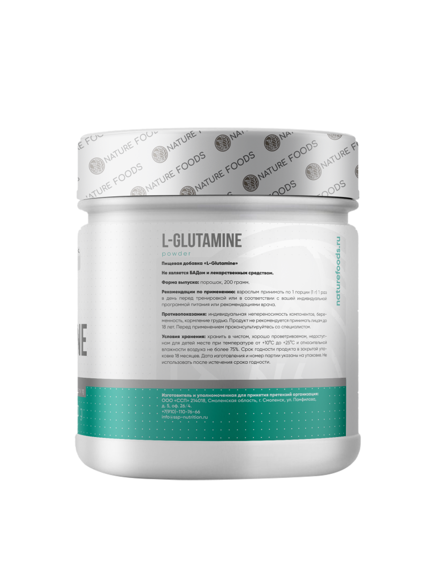 Форма выпуска: порошок 200 грамм. Рекомендации по применению: взрослым принимать по 1 порции (1) 1 раз в день перед тренировкой или в соответствии c вашей индивидуальной программой питания или рекомендациями врача. Противопоказания: индивидуальная непереносимость компонентов, беременность, кормление грудью. Продукт не рекомендуется принимать лицам до 18 лет. Перед применением проконсультируйтесь со специалистом. Состав: L-глутамин 1000 мг Условия хранения: хранить в чистом, хорошо проветриваемом, недостутном для детей месте при температуре от +10°С до +25°С и относительной влажности воздуха не более 75%. Срок годности продукта в закрытой упоковке 18 месяцев. Дата изготовления и номер партии указаны на упаковке. Не использовать после истечения срока годности.