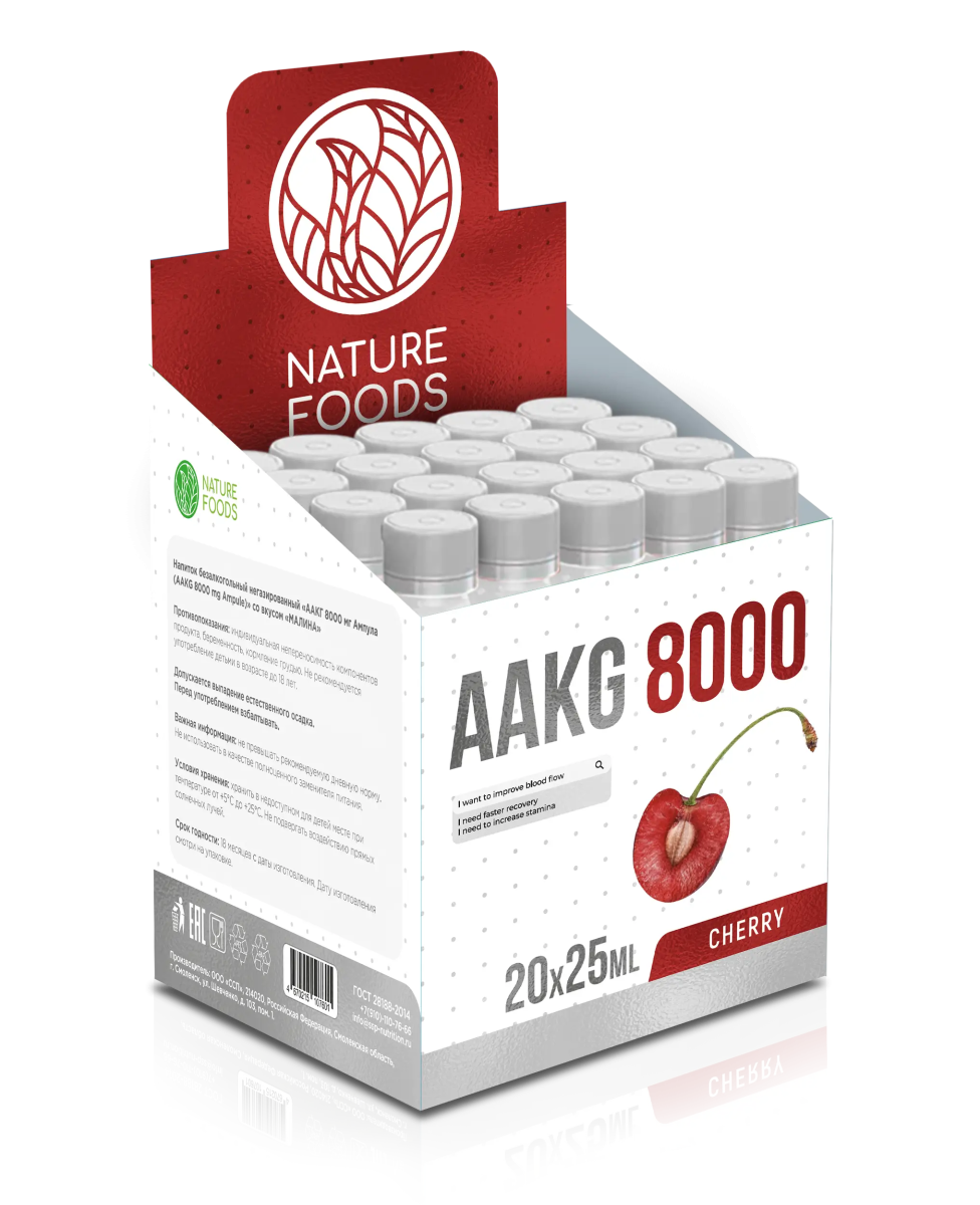 Nature Foods AAKG 8000 25 ml Amp – это мощный предтренировочный комплекс в удобном жидком формате, созданный для максимальной производительности и улучшения тренировочных результатов. Этот продукт станет идеальным выбором для тех, кто стремится увеличить мышечную массу, улучшить кровообращение и повысить выносливость. Особенности продукта 8000 мг AAKG в ампуле: Ультраконцентрированная формула на основе аргинина альфа-кетоглютарата (AAKG), который активно поддерживает синтез оксида азота, улучшая кровоток и питательное обеспечение мышц. Удобная форма: Жидкий формат в индивидуальных ампулах – это быстрое усвоение и лёгкость использования даже в дороге. Три освежающих вкуса: Вишня, Малина, Цитрусовый микс – для приятного и разнообразного приема. Ключевые преимущества для спортсменов и женщин Увеличение выносливости и производительности: AAKG способствует расширению сосудов, улучшает доставку кислорода и питательных веществ в мышцы, что помогает тренироваться дольше и эффективнее. Эффект пампинга: Улучшает кровообращение и усиливает ощущение наполненности мышц, что особенно важно для женщин, стремящихся подчеркнуть рельеф тела. Ускорение восстановления: Поддерживает регенерацию мышечных тканей после нагрузок, снижая усталость. Энергия и тонус: Комплекс поддерживает высокий уровень энергии, обеспечивая продуктивные тренировки и активный образ жизни. Для кого подходит этот продукт? Для женщин, которые стремятся к подтянутой и рельефной фигуре. Для спортсменов, нацеленных на улучшение своих тренировочных показателей. Для тех, кто ценит удобство и быстродействие жидкого формата. Рекомендации по применению: Принимать 1 ампулу (25 мл) за 30 минут до тренировки. Перед употреблением встряхнуть. Важно: Не превышайте рекомендуемую дозировку. Не рекомендуется при беременности, лактации и при индивидуальной непереносимости компонентов продукта. Вкусы, которые вы полюбите: Вишня: Сладкий и насыщенный вкус для приятного старта тренировки. Малина: Легкая кислинка с освежающим послевкусием. Цитрусовый микс: Заряд бодрости с тропической свежестью. Nature Foods AAKG 8000 – это ваш надежный партнер на пути к новым спортивным вершинам и совершенствованию фигуры. Почувствуйте мощь AAKG и сделайте свои тренировки по-настоящему продуктивными!