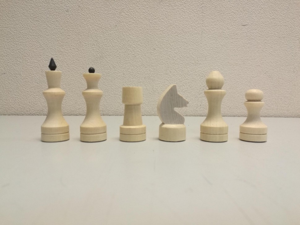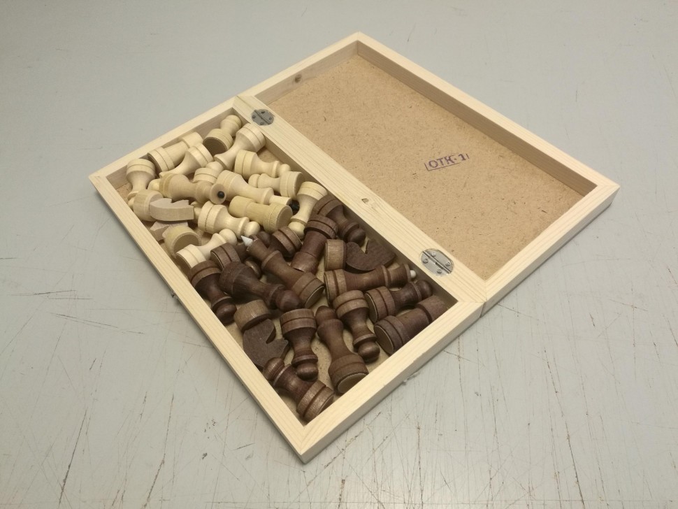Доска: корпус пиломатериалы хвойных или лиственных пород, крышка - фанера. Покрытие доски – лак. Размер доски (мм): длина 290±4,05, ширина 145±3,15, высота 38±1,95. Размер квадрата шахматного поля (мм) 33±1,95. Фигуры изготовлены из пиломатериалов лиственных пород. Покрытие фигур – парафин. Подклейка фигур - винил-кожзам. Размер фигур (мм): Король: Ø основания 24±1,65, высота 72±2,30 Ферзь: Ø основания 24±1,65, высота 60±2,30 Слон: Ø основания 24±1,65, высота 59±2,30 Ладья: Ø основания 24±1,65, высота 46±1,95 Конь: Ø основания 24±1,65, высота 50±1,95 Пешка: Ø основания 24±1,65, высота 44±1,95
