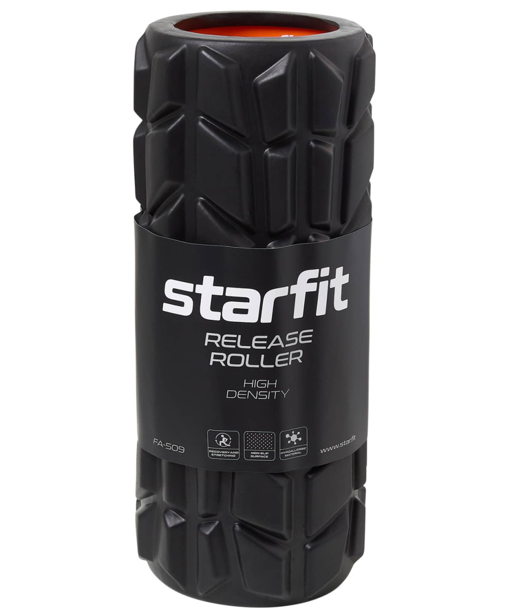 Ролик массажный FA-509, EVA/PP, высокая жесткость, 33x13,5 cм, черный/оранжевый