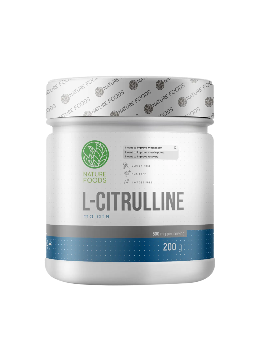 Nature Foods Citrulline Malate – это порошковый цитруллин малат. Соединение аминокислоты цитруллина с яблочной кислотой. Цитруллин является конечной стадией превращения аргинина в оксид азота. То есть приём цитруллина дает более мощный и быстрый эффект, без промежуточных преобразований. Для достижения того же эффекта, что и аргинина (образование оксида азота и пампинг), цитруллин употребляется в меньшей дозировке (в два раза) На выработку креатина и ГР не влияет. Наличие малата (яблочной кислоты) обеспечивает более высокую биодоступность цитруллина, а также повышает эффективность образования энергии внутри клетки (цикл образования АТФ) Для более высокой эффективности цитруллин и аргинин можно употреблять совместно, повышая тем самым еще сильнее наполняемость мышц кровью и продуктивность от силового тренинга. Размер порции: 0,5 грамм (1 мерная ложка) Количество порций: 400 Состав на одну порцию: L-цитруллина малат – 500 мг Рекомендации по приму: Смешать 2-3 мерные ложки с 200-300 мл воды и принимать за 20-30 минут до тренировки. Можно применять миксом вместе с креатином, аргинином, бета-аланином и аминокислотами.