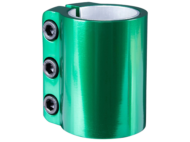 Be-3 Green – это трехболтовый зажим для трюкового самоката. Модель изготовлена из легкого, но прочного алюминия. Be-3 предназначен для самокатов на резьбовой, IHC или HIC системе компрессии. В комплекте идет адаптер, который позволяет закрепить зажим на руле меньшего диаметра. Преимущества: Надежная фиксация тремя болтами; Сделан из прочного алюминия; Адаптер в комплекте. Характеристики: Материал: алюминий Количество болтов, шт.: 3 Внутренний диаметр зажима, мм: 34.8 Внутренний диаметр зажима с адаптером, мм: 31.8
