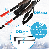Палки лыжные VUOKATTI гибридные 35/65 предназначены для спортсменов с начальным уровнем подготовки. Состав: 65% стекловолокно (Fiberglass), 35% углеволокно (Carbon). Лыжные палки - легкие, прочные, современные палки лыжные для катания. Они подходят начинающим спортсменам. Модель лыжных палок делает то, что должно делать лыжное снаряжение: экономит энергию. Конструкция из стекловолокна и карбона высшего качества делает их легковесными и прочными для легкого и эффективного передвижения. Усиленный ремешок позволяет передавать большее усилие на ровной поверхности или при подъеме. Палки стоит подбирать на 25-30 см ниже роста для классического хода. И на 15-20 для конькового. Лыжные палки предназначены начинающим спортсменам-любителям, туристам и любителям активного отдыха. Палки лыжные гоночные подойдут для взрослых и подростков. Лёгкие и недорогие лыжные палки VUOKATTI с привлекательным дизайном, для новичков в мире лыжного спорта, любителей активного отдыха и туристов. Длину лыжных палок можно подобрать по таблице соответствия роста лыжника и размера палок.