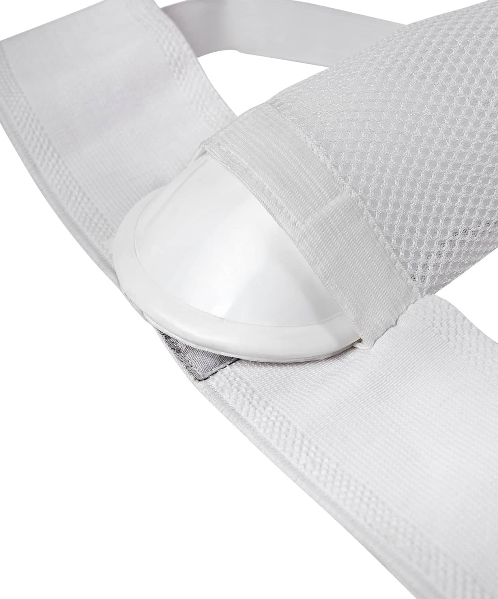 Защита паха INSANE PROTEC IN23-GG01 является одним из ключевых элементов защитного снаряжения для контактных видов спорта. Она предназначена для спортсменов, занимающимися различными видами единоборств. PROTEC поможет защитить наиболее уязвимые участки тела во время тренировок в парах, учебных и спортивных поединков. Такая экипировка делает занятия боксом, карате, тхэквондо, ММА и другими направлениями безопаснее, снижает риск получения травм. Защита паха PROTEC удобна в использовании. Широкая резинка обеспечивает плотное прилегание и надежно фиксируется на теле благодаря поддерживающим эластичным лентам. Ракушка для единоборств изготовлена из пластика повышенной жесткости, это позволяет обеспечить уверенную защиту данной области даже во время тесного контакта с соперником. В ракушке предусмотрены вентиляционные отверстия для улучшенного воздухообмена. Края пластикового вкладыша покрыты силиконом, чтобы защитить тело от травм во время движения. Ракушка помещена в мешочек из дышащего сетчатого материала. Изделие не требует сложного ухода – прочный пластиковый элемент легко вытащить перед стиркой. Изделие упаковано в блистер для безопасной транспортировки аксессуара. Преимущества: Ракушка из пластика повышенной жесткости; Края ракушки покрыты силиконом; Удобная широкая резинка; Вкладыш помещен в мешочек из дышащего сетчатого материала; Ракушку можно вынуть перед стиркой; Упакована в блистер. Характеристики: Цвет: белый Материал внешний: полиэстер, хлопок Материал ракушки: высокопрочный пластик, съемный Размерный ряд: S, M, L, XL Упаковка: блистер Страна производства: Пакистан