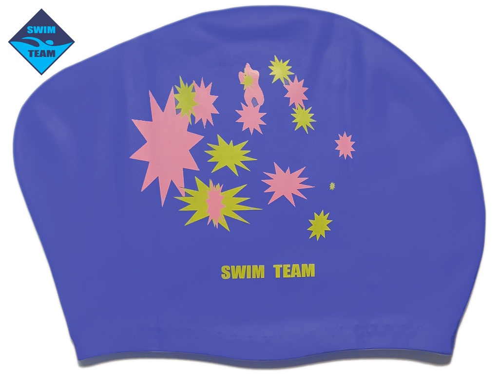 Шапочка для плавания для длинных волос Swim Team звезды, синий