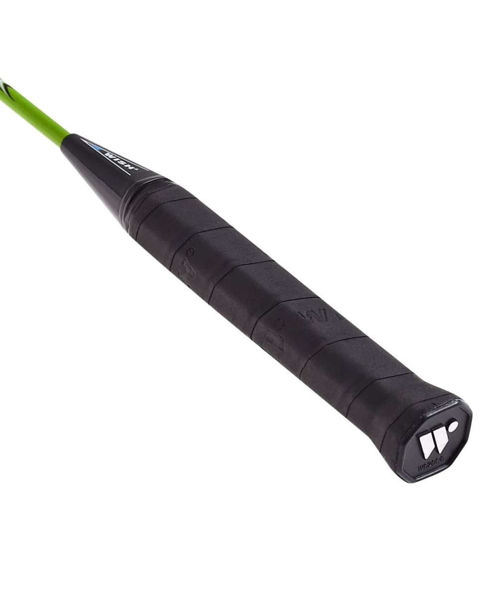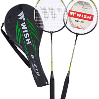 Набор для бадминтона Wish состоит из 2 ракеток овальной формы и специального чехла для хранения, оснащенного удобным ремнем для переноски. Набор ракеток для бадминтона разработан для бадминтонистов-любителей, которым требуется максимально надежная, удобная в игре и маневренная ракетка. Прекрасно подходит для игры в атакующем стиле. В комплект к ракеткам для бадминтона для начинающих идет укороченный чехол 3/4. Удобный чехол для хранения и переноски; Натяжение струн оптимально для любителей; Высокая ударопрочность. Обратите внимание! Рукоятка ракетки упакована в защитную полимерную плёнку. На пленке белым цветом нанесен логотип Wish. На самой рукоятке белый логотип отсутствует - вместо него выполнено тиснение на оплётке черного цвета (см. фото). Характеристики: Материал обода: алюминий Материал стержня: сталь Длина ракетки, см: 66,5 Ширина рамы, мм: 7,8 Диаметр древка, мм: 7 Размер ручки: G2 Вес ракетки, г: 3L (110 - 114,9) Натяжение струн, кгс: 8,2 - 9,1 Цвет: зеленый Комплектация: 2 ракетки, чехол 3/4
