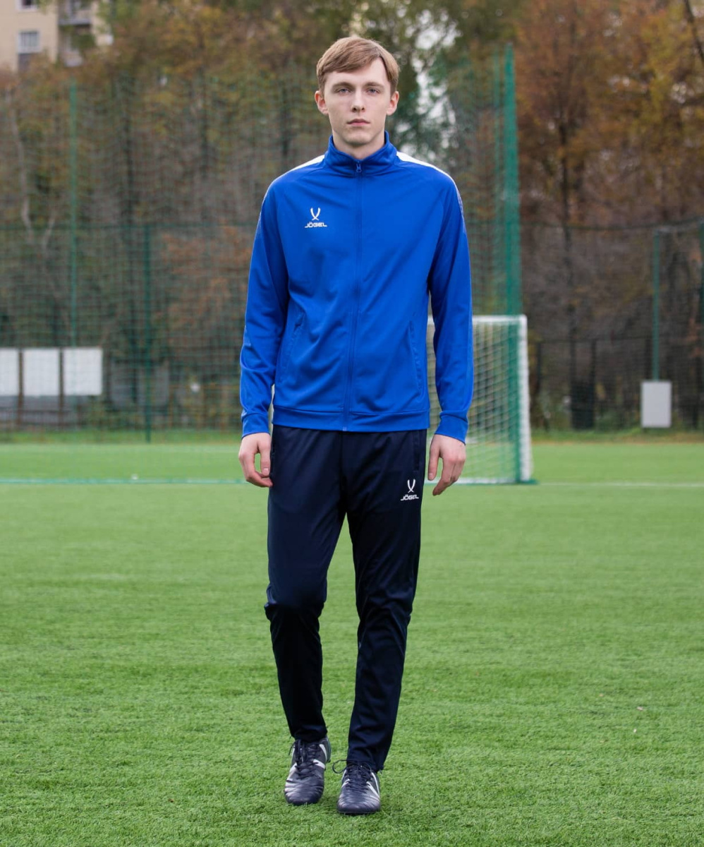 Стильная трикотажная олимпийка для спорта и повседневной жизни атлетического кроя выполнена из мягкого на ощупь полиэстера. Создана для тренировок и прогулок в прохладную погоду. Рукав реглан. По плечам динамический паттерн-принт в виде шестиугольников с имитацией градиента. Манжеты из основной ткани. Справа в области груди расположен логотип. Олимпийка удачно сочетается с тренировочными брюками Jogel Camp. athletic fit (атлетический крой); эластичный износоустойчивый и быстросохнущий материал; графический принт на рукавах. Характеристики: Ткань: 100% полиэстер Цвет: синий Размеры: S, M, L, XL, XXL, XXXL Тип упаковки: пакет с картонной этикеткой и стикером