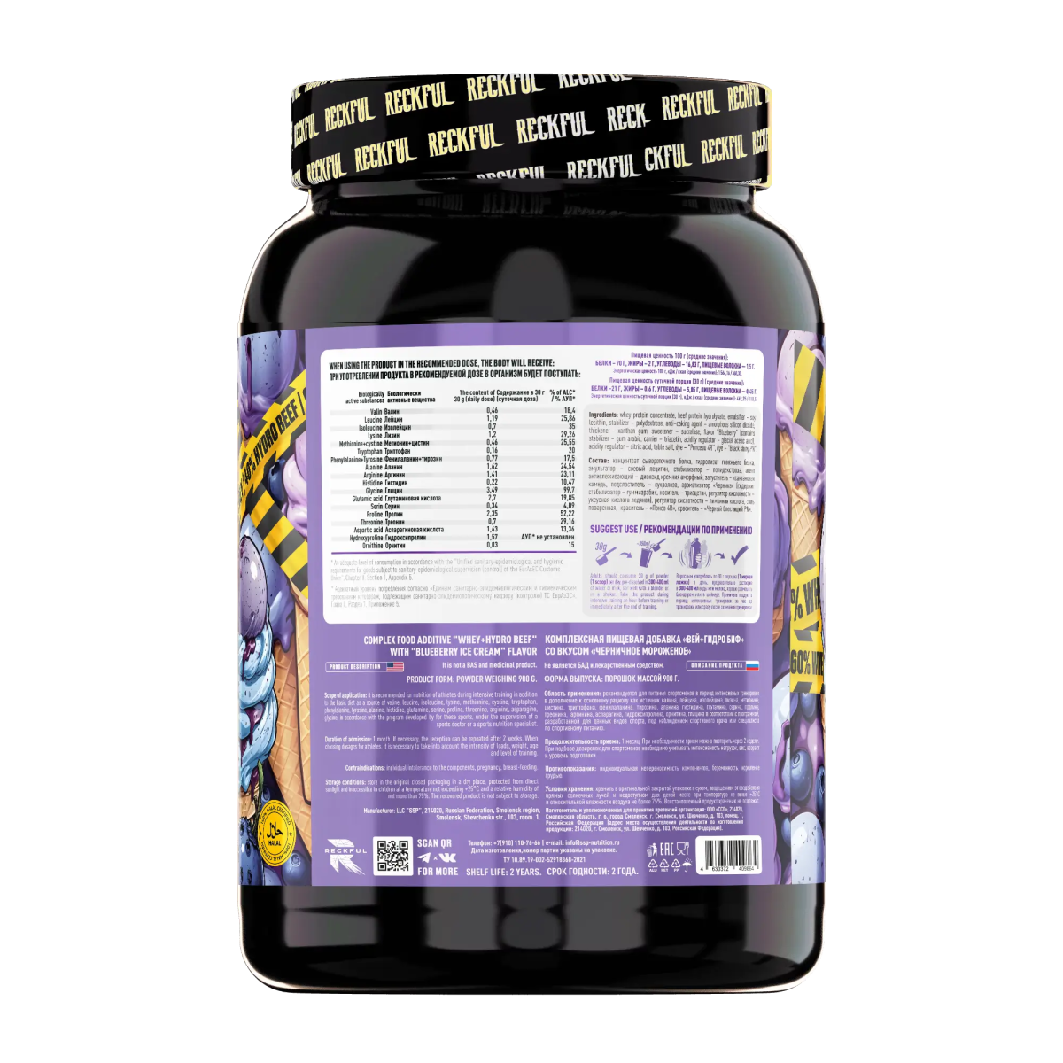 Reckful ® Whey + Beef protein 900g 30 serv