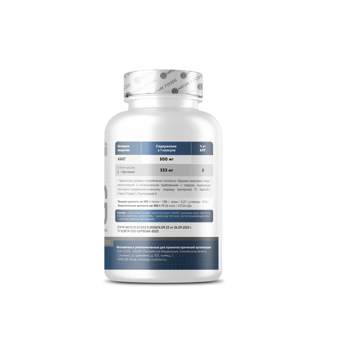 Nature Foods AAKG (Аргинин Альфа-Кетоглутарат) — улучшенная форма аминокислоты аргинина, которая обладает высокой биодоступностью и длительным эффектом. В отличие от обычного аргинина, AAKG требует меньших доз для достижения аналогичных результатов, что делает его более эффективным и удобным для использования. Основные преимущества AAKG: Улучшенная биодоступность: для достижения максимального эффекта достаточно меньшей дозы, чем у традиционного аргинина. Увеличение кровообращения: AAKG стимулирует выработку оксида азота, что расслабляет гладкую мускулатуру сосудов, улучшая кровоток и кровенаполнение мышц. Это способствует более эффективному транспорту кислорода и питательных веществ в мышцы, а также выведению продуктов распада. Поддержка роста мышечной массы: AAKG может способствовать увеличению уровня гормона роста, что особенно важно для спортсменов и бодибилдеров. Как работает AAKG? Аргинин альфа-кетоглутарат способствует улучшению кровообращения, что помогает максимизировать эффективность тренировки и ускоряет восстановление после физических нагрузок. Это делает его идеальным дополнением к вашему спортивному режиму. Рекомендации по применению: Принимать 1-3 капсулы 1 раз в день. Размер порции: 1 капсула Количество порций в упаковке: 30 порций Состав на порцию: L-аргинин альфа-кетоглутарат — 333 мг Повысьте эффективность ваших тренировок и ускорьте восстановление с Nature Foods AAKG — качественным и мощным дополнением для активных людей и спортсменов!