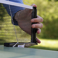 Нейлоновая сетка для настольного тенниса Team Clip On с креплением «клипса» от всемирно известного немецкого бренда Donic-Schildkröt прекрасно подходит для игры на открытом воздухе и в помещении. Конфигурация крепежа позволит быстро установить изделие на столе. Сетка для пинг-понга регулируется по длине. Максимальная толщина панели стола - 3,5 см. Крепление «клипса»; Легкая установка; Регулировка по длине. Характеристики: Материал: нейлон, металл Крепление: клипса Натяжение: регулируемое
