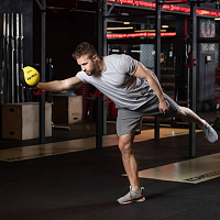 Медбол GB-702 высокой плотности - это важный аксессуар для функциональной тренировки тела. Серия медболов STARFIT отличается жесткостью поверхности, а также ярким цветным дизайном. Медбол выполнен из резины и наполнен цементом внутри. Он отлично отскакивает, позволяя выполнять разнообразные упражнения в динамике. Его небольшой вес оптимален как для начинающих, так и для опытных спортсменов. Медицинбол используют в групповых программах, функциональном тренинге, бодибилдинге и фитнесе. Также утяжеленный мяч применяют профессиональные спортсмены в единоборствах. Такие снаряды для фитнеса помогают в тренировке мышц кора (пресса), мышц рук, грудной клетки, спины, плеч, ног и ягодиц. С его помощью можно провести полноценную тренировку всего тела, привести мышцы в тонус и сформировать красивый рельеф. Спортивный мяч актуален для домашних занятий и зала. Преимущества: Жесткая поверхность; Качественный отскок; Небольшой вес (медбол 1 кг). Характеристики: Цвет: желтый Вес, кг: 1 Внешний материал: резина Наполнитель: цемент Диаметр, см: 18,8 Тип упаковки: пакет со стикером Производство: КНР