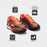 Детские сороконожки (турфы) - футбольная обувь, предназначенная для игры на синтетических газонах, грунте или ковровых покрытиях. Яркий дизайн и высокие технические характеристики обеспечат ребенку самые приятные впечатления от тренировок и игр. Это детская обувь комфортная, устойчивая и прочная. Верхняя часть выполнена из высококачественного синтетического материала, отвечающего за контроль мяча. Внутренняя подкладка изготовлена из мягкого текстиля - для комфорта. Носок усилен для защиты и качества и силы удара. Имеются варианты со шнурками и с липучкой Липучка вместо шнурков позволит даже самому маленькому футболисту самостоятельно легко и быстро подготовиться к выходу на поле. К тому же такая система крепления улучшает посадку стопы. Промежуточная подошва изготовлена из материала phylon для амортизации. Подошва изготовлена из износостойкой резины. Шипы расположены так, что игрок сохраняет устойчивость на газоне в любой момент игры.
