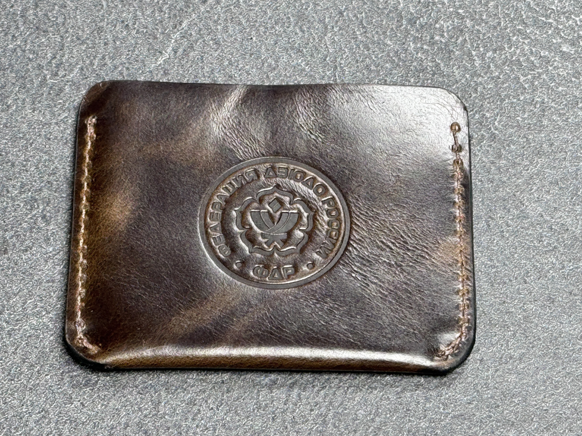 Кардхолдер из натуральной кожи с логотипом дзюдо, коричневый с текстурой