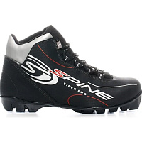 Лыжные ботинки, начального уровня. Катание преимущественно классическим стилем. Для активного отдыха, неспешных лыжных прогулок по лесу. Модель используется для прокатов, на лыжных и туристических базах. В школах на занятиях физкультурой. Фиксация ноги осуществляется открытой шнуровкой. "Язык" - клапан для защиты от снега и влаги. Верх ботинка выполнен из высококачественного, синтетического морозостойкого материала с полиуретановым покрытием. На внешней боковой части ботинка, нанесен двухцветный фирменный принт SPINE VIPER PRO. Улучшенная анатомическая колодка ботинка - комфортная, средней полноты. Утеплитель - флис (очень теплый, синтетический материал, который практически не задерживает в себе влагу. Двухкомпонентная стелька. Низ выполнен из ППУ (эластичный, вспененный материал, за счет своей пористой структуры, хорошо удерживает тепло). Верх из капровилюра, материалы отлично сохраняют тепло ноги при спокойных размеренных прогулках по лесу. Состав подошвы - высокотехнологичный термопласт с увеличенным протектором для прогулок без лыж. Подошва позволяет передвигаться с комфортом от лыжни до автомобиля или по пути следования к месту отдыха и обратно. Условия эксплуатации - до -30°С.