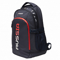 Рюкзак состоит из двух отделений, закрывающихся я на двухзамковую тесьму молнии. На передней части рюкзака накладной карман с на тесьме молнии. На боковых стенках выполнены карманы из сетки. В переднем накладном кармане выполнен внутренний карман-органайзер. Спинка и лямки продублированы мягким материалом с технологией "Air-mesh" для удобства эксплуатации и принятия анатомически удобной формы. Лямки регулируются по длине. Объем рюкзака 35 литров. ш*в*г 33*48*21см Нанесения: Жаккардовый шеврон «Флаг РФ», принт «NATIONAL TEAM», принт «RUSSIA», принт «FORWARD», вышивка «F». Состав: 100% полиэстер, подкладка 100% полиэстер.