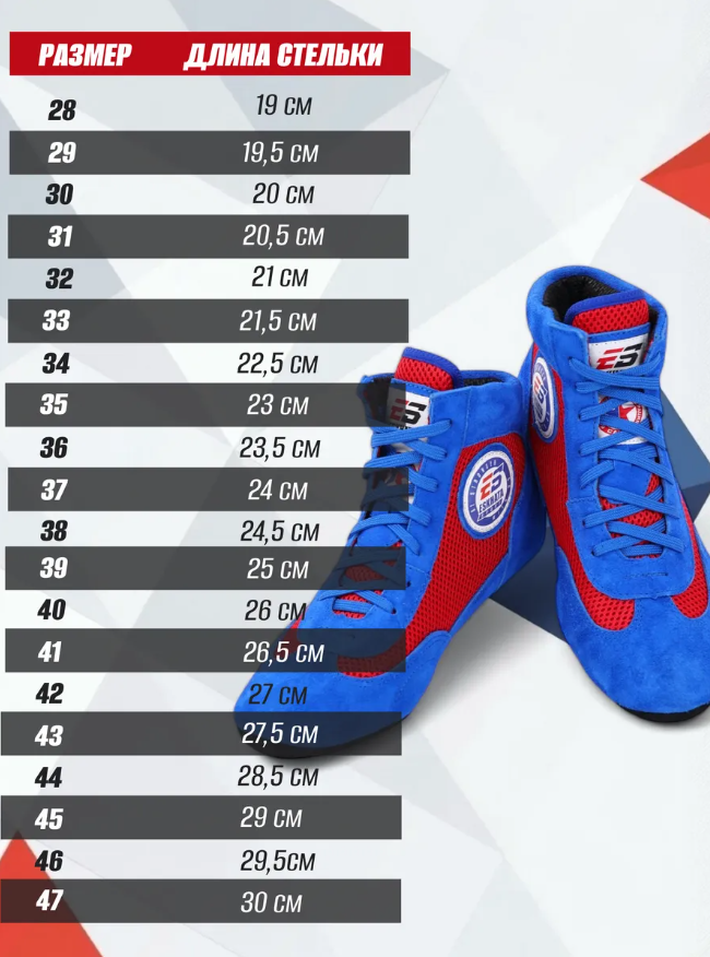 Борцовки для самбо на шнурках – это неотъемлемый элемент экипировки для каждого, кто увлекается этим видом спорта. Наши самбовки созданы с учетом всех требований, предъявляемых к обуви для борьбы, бокса и других единоборств. Подошва выполнена из натуральной кожи с внутренней стелькой из полиуретана. Самбовки произведены по колодке и держат форму. Они обеспечивают идеальную фиксацию ног, защиту и комфорт, помогая спортсмену достигать наилучших результатов на ринге или татами. Особенности наших борцовок: - Шнурки обеспечивают надежную фиксацию обуви на ноге, позволяя полностью контролировать движения. Длинные шнурки помогают подогнать обувь по ноге, обеспечивая максимальный комфорт. - Борцовки изготовлены из прочных и дышащих материалов с использованием сеточки и мягкой подкладки, что обеспечивает вентиляцию и комфорт даже во время интенсивных тренировок. Подошва выполнена из специального материала, который обеспечивает отличное сцепление с поверхностью, предотвращая скольжение и снижая риск травм. - Мягкая стелька и подкладка защищают ноги от ударов и натираний, обеспечивая комфорт в течение всей тренировки. Борцовки идеально подходят как для взрослых мужчин и женщин, так и для подростков и детей. - Мы предлагаем широкий выбор цветов – от классических красных и синих до стильных белых и черных. Наши борцовки соответствуют традициям российского самбо и добавят вашему образу на тренировках и соревнованиях нотку патриотизма и профессионализма. - Борцовки подходят для занятий самбо и других видов единоборств (дзюдо, бокс, рукопашный бой). Могут использоваться как спортивная обувь для тренировок в зале. - В ассортименте имеются размеры для мужчин, женщин, подростков и детей. Будь то начинающий спортсмен или опытный мастер, каждый найдет подходящую модель. Борцовки станут отличным выбором для ежедневных тренировок, соревнований или как часть спортивной формы. Наши самбовки – это выбор настоящих борцов. Они сочетают в себе высокое качество, комфорт и долговечность.