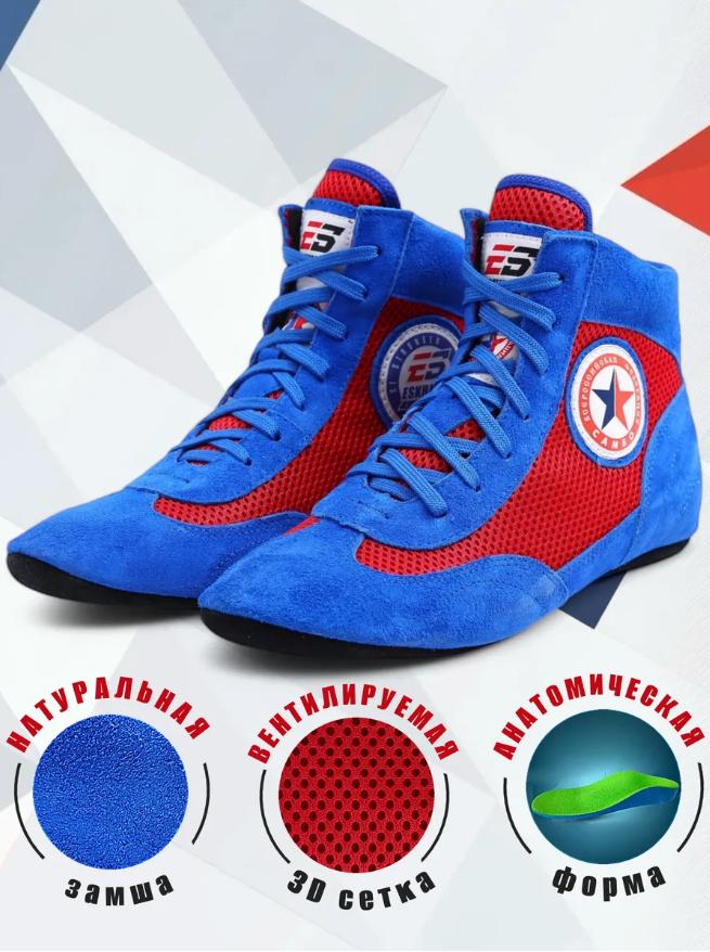 Борцовки для самбо ВФС ESKHATA, сине-красные