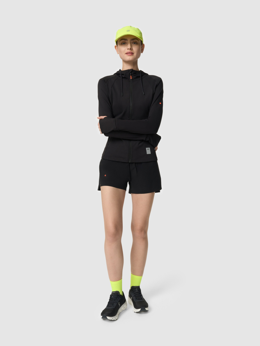 Подойдут для пробежек весной, летом и осенью при температуре от +10 до +30°C. Понравятся тем, кто любит свободные и короткие модели шорт. В задний карман на молнии можно положить телефон, в боковые на поясе — спортивное питание и всякие мелочи. Плюс у этих шорт есть внутренний кармашек для ключей. В женской модели таких кармашков сразу два. В мужской модели — один. Григорий Лазарев, основатель бренда GRI: «Лето — это модель, проверенная временем, но мы продолжаем её совершенствовать. В этом сезоне значительно поработали с кроем. Теперь шорты сидят лучше и на мужчинах, и на женщинах. Кроме того, добавили яркие цвета, о которых нас так просили». Детали • Два боковых кармана на пояснице из эластичной сетки. • Разрез сбоку для комфортного поднятия бедра. • Задний карман на молнии для телефона. • Внутренний кармашек для ключей. В женской модели таких кармашков сразу два. В мужской модели — один. • Плоский пояс с брендированием. • Подтрусники. Состав 88% нейлон, 12% спандекс. Рекомендации по уходу • Машинная стирка 30°C. • Отжим на 600 оборотах. • Вертикальная сушка. • Сушка в машине запрещена. • Отбеливание запрещено. • Глажение при низкой температуре — 75°C.