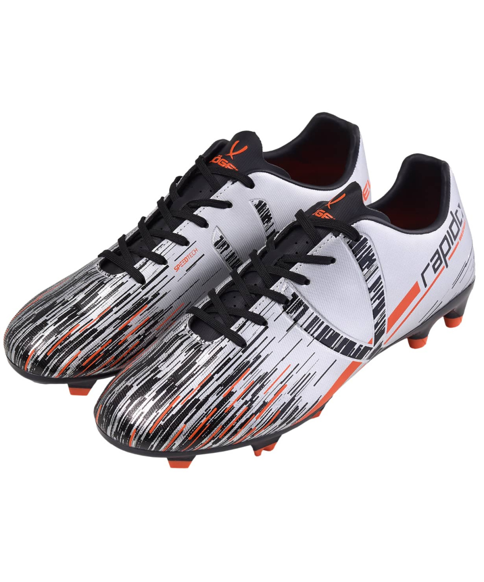 Обновленные цвета хорошо всем известной модели Rapido из линейки neo.Sprint. Многошиповые бутсы отлично подходят для игры на искусственных и натуральных поверхностях. Они стали еще практичнее, комфортнее и технологичнее. В Rapido используется технология Speedtech для максимальной скорости на поле. Анатомическая форма новой колодки обеспечивает еще более правильное положение стопы. Мягкая стелька из материала ЭВА распределяет нагрузку и дает необходимый комфорт. Для дополнительного вентилирования в язычке сделаны специальные отверстия. Конфигурация подошвы из 11-ти шипов обеспечивает комфортное сцепление с поверхностью и позволяет развивать максимальную взрывную скорость. В производстве обуви Jögel используются только качественные материалы, обувь легко моется и не требует дополнительного ухода. Технология Speedtech - соединение облегченных материалов и динамичной конструкции бутсы, позволяющее футболисту раскрыть свои скоростные способности. Преимущества: Многошиповые бутсы; Технология Speedtech для максимальной скорости на поле; Анатомическая колодка; Мягкая стелька из ЭВА. Характеристики: Материал верха: полиуретан Материал подкладки обуви: текстиль Материал подошвы обуви: термополиуретан Материал стельки: этиленвинилацетат, текстиль Полнота обуви: Е Размерный ряд: 34-45 (RU) Основной цвет: серебристый Дополнительные цвета: черный/оранжевый Вид застежки: шнурки Тип подошвы: шипованная Назначение обуви: спорт, футбол Рекомендованные покрытия: искусственный газон, тюрф, гравийные покрытия Комплектация: бутсы, коробка Вес пары, г: 750 г Тип упаковки: коробка со стикером Страна производства: Китай